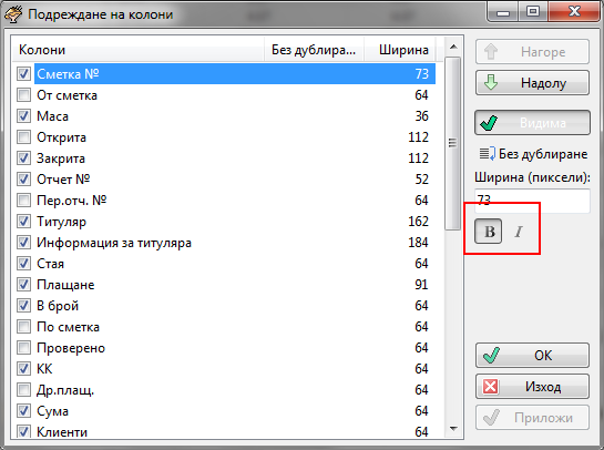 в всички справки вече има възможност за определяне шрифта на отделните колони